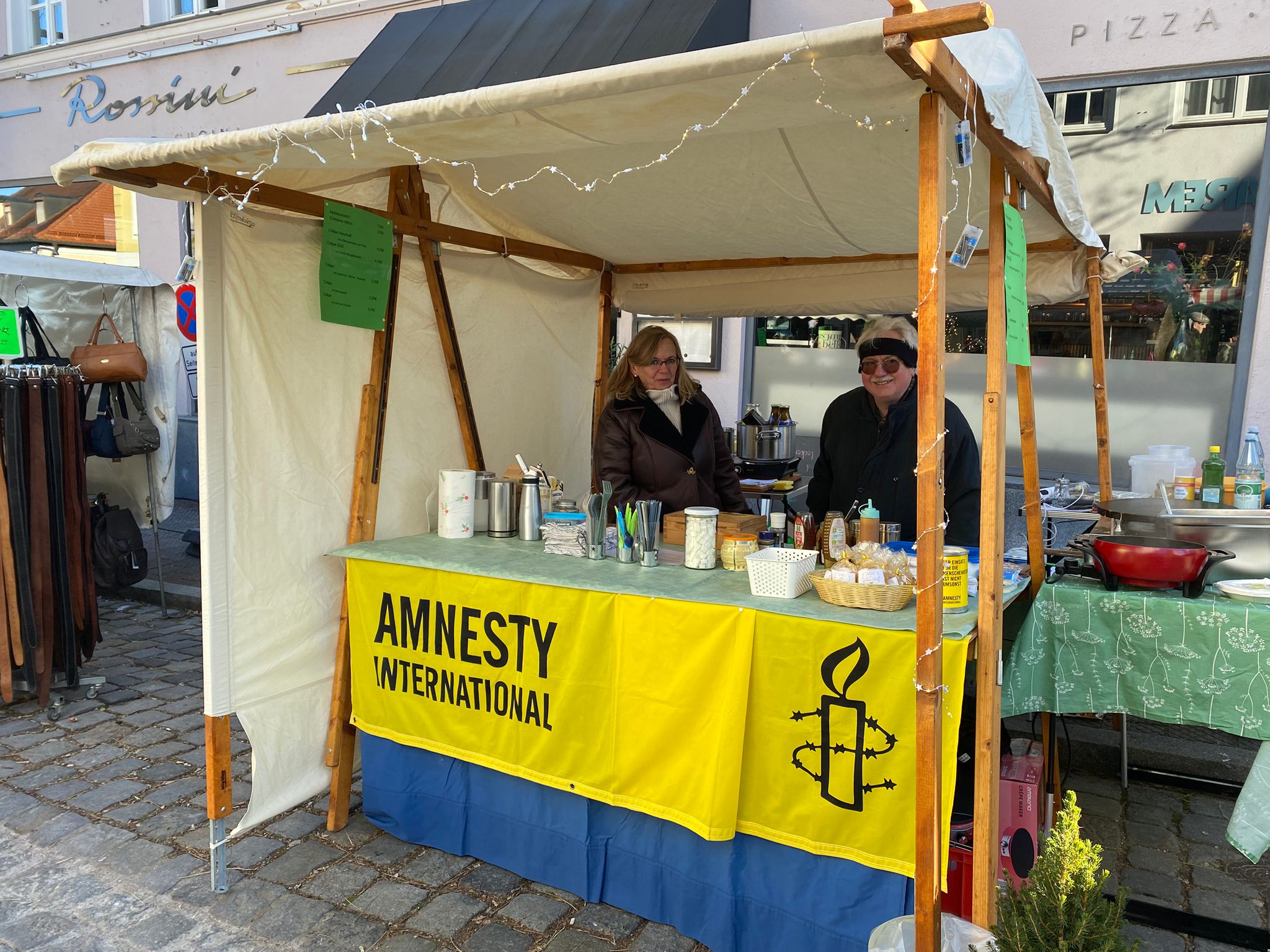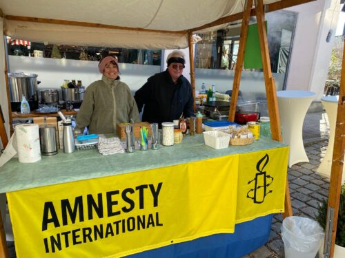Am 23. November 2025 war die Amnesty International – Gruppe Dachau mit einem Crêpes- und Getränke-Stand auf dem Dachauer Adventsmarkt in der Altstadt vertreten. Mit süßen und herzhaften Crêpes, Punsch und Goldener Milch lud die Gruppe die Besucherinnen und Besucher ein, sich zu stärken und dabei über Menschenrechte ins Gespräch zu kommen.